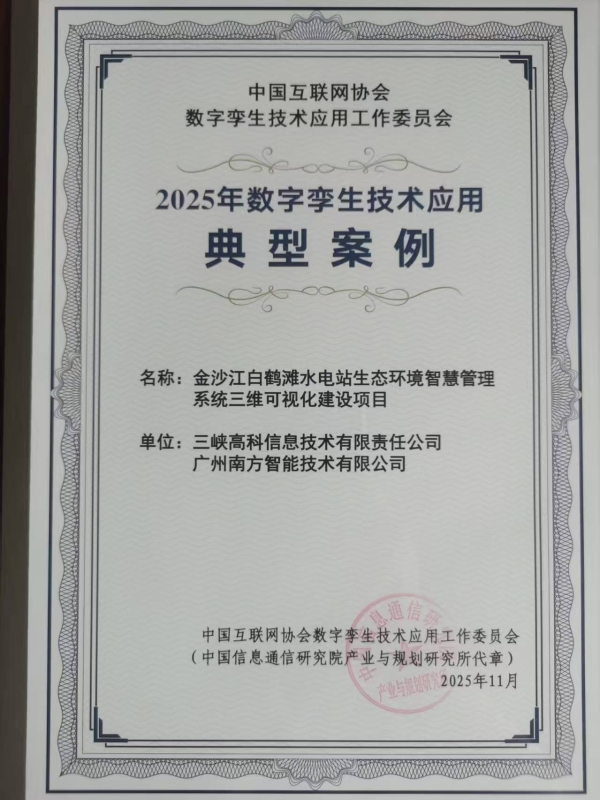 近日,在第二屆數字孿生技術與產業發展大會上,三峽高科聯合廣州南方智能技術有限公司打造的金沙江白鶴灘水電站生態環境智慧管理系統三維可視化建設項目,成功入選“2025年數字孿生技術應用十大典型案例”。